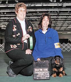 Hallie loves obedience work so I got her an ILP registration # with the AKC so I could show her in obedience. She had her first show in January 2005 and had a BALL. She gets so excited when she works her chin will quiver and she will do a "happy spin" when we do our right turns...which is REALLY cute, but costs us 10 points per spin...